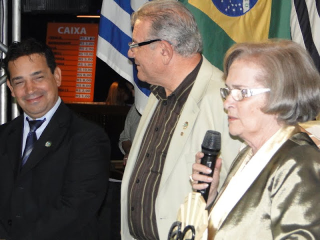 mãos do Secretário de Cultura de Araçatuba, prof. Hélio Consolaro, da secretária de Assistência Social Cidinha Lacerda, do presidente da