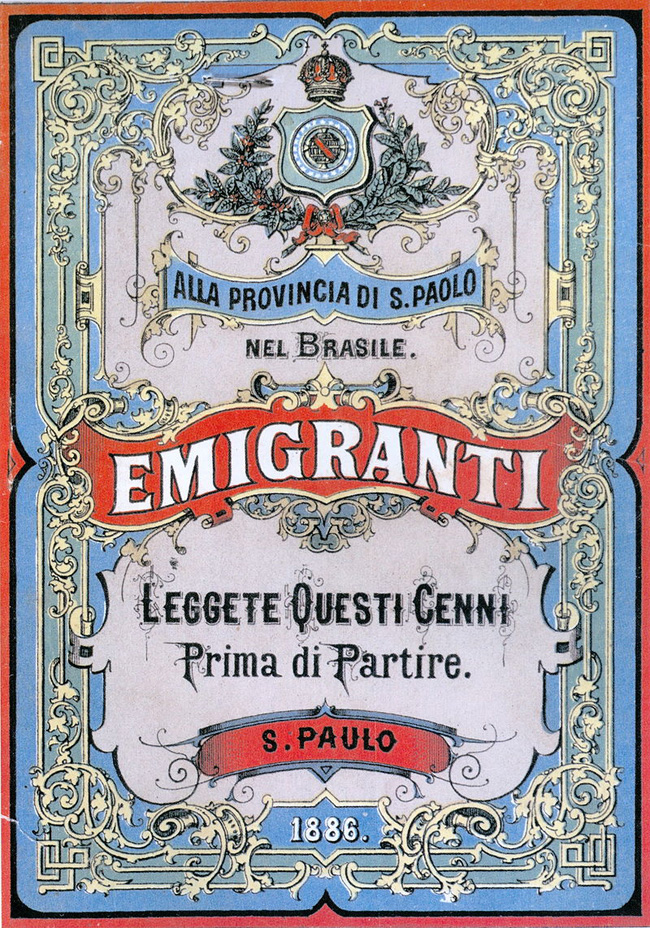 Manifesto realizado em 1886 pelo Estado federativo de São Paulo, destinado a potenciais emigrantes italianos que decidiam partir para o Brasil.